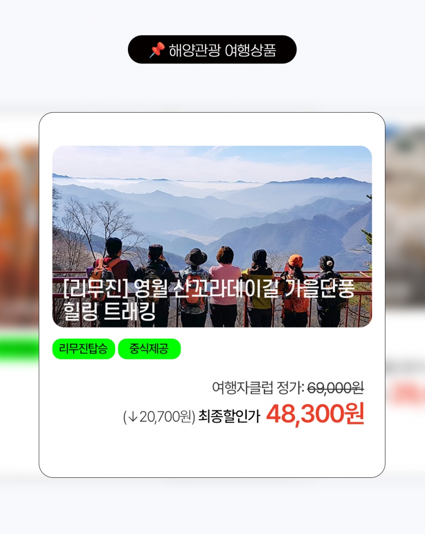 산꼬라데이길-모운동길 단풍트래킹 - 망경산사-만경사-임도길-황금폭포-모운동마을 : 8㎞ - 트래킹 종료 후 영월 서부시장에서 늦은 점심식사(코다리조림) * 트래킹난이도 : 하(중) |