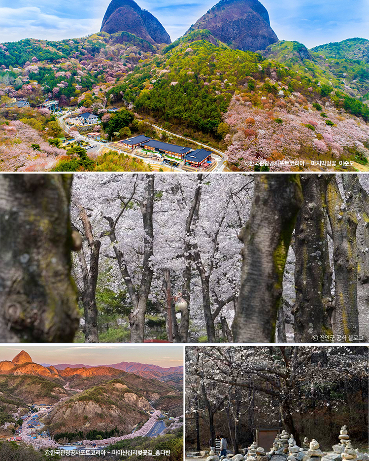 진안 도착 및 마이산 벚꽃 여행 - 진안고원의 환상적인 산벚꽃 풍경 - 남문주차장~탑사~북문주차장 - 점심식사(식당이용가능) ![]() 진안 마이산