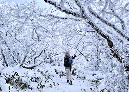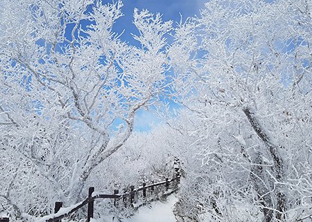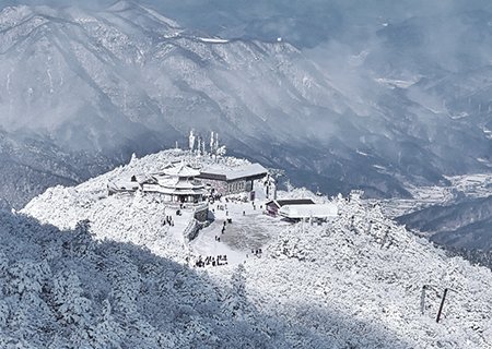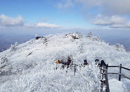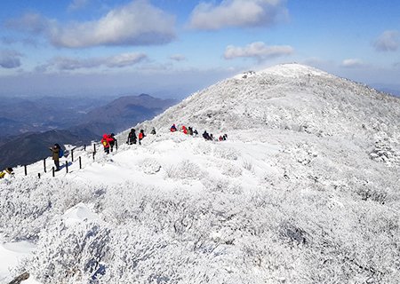 덕유산 눈꽃 트래킹 - 곤도라 탑승(왕복) - 무주리조트-케이블카-설천봉-향적봉-중봉-설천봉-무주리조트(원점회귀 왕복코스) - 설천봉(케이블카 하차지점) - 향적봉(덕유산 정상) , 편도0.6㎞ / 20분 소요), 체력에 맞게 설천봉 왕복 코스로 갔다오시면 됩니다. - 점식식사 ![]() * 트래킹난이도 : 하(상) 설경이 아름다운 덕유산 최고봉 향적봉