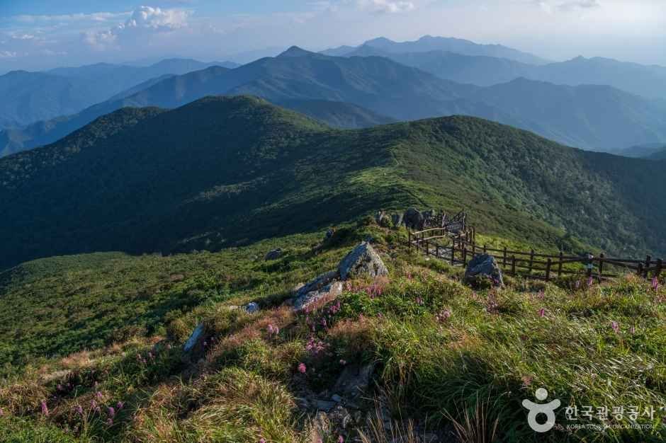 덕유산은 전북 무주·장수와 경남 거창·함양에 걸친 산으로 해발 1,614m의 향적봉을 최고봉으로 한다. 향적봉은 남한에서 네 번째로 높은 봉우리로, 주목과 구상나무 군락, 철쭉 군락 등 생태적 다양성을 지닌다. 겨울철에는 눈이 많이 내려 설경이 아름답고 곤돌라를 이용한 설천봉~향적봉 구간은 짧은 코스로 인기가 많다.