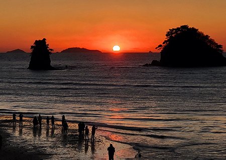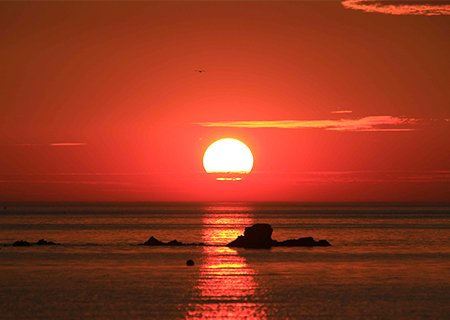 충남 태안군 안면읍 광지길에 자리한 꽃지해변은 5㎞에 이르는 백사장과 할배바위, 할매바위가 어우러져 그림 같은 풍광을 보여준다. 2개의 바위 너머로 붉게 물드는 낙조는 태안을 상징하는 아름다운 풍광 중 으뜸으로 꼽힌다. 예부터 백사장을 따라 해당화가 지천으로 피어나 ‘꽃지’라는 어여쁜 이름을 얻었다. 한여름뿐 아니라 사계절 여행자들의 발길이 끊이지 않는 것은 바위와 어우러진 낙조 때문이다. 해질 무렵이면 할매바위, 할배바위 너머로 아름답게 물드는 일몰 풍경을 카메라에 담으려고 많은 사람들이 모여들어 진풍경을 펼친다.