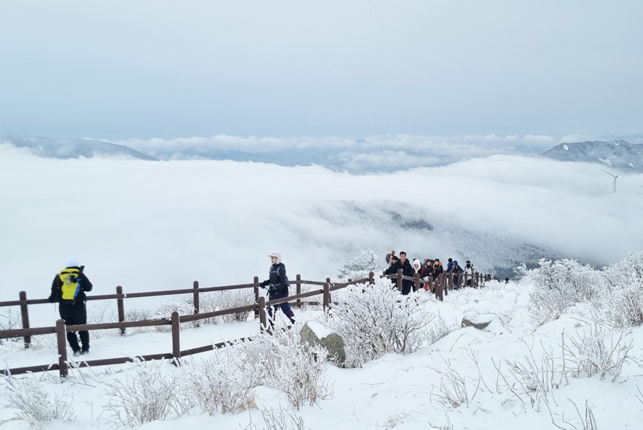 함백산 눈꽃트래킹 - 코스: 만항재입구-함백산 정상-만항재 주차장 - 거리: 왕복5.4㎞, 소요시간: 약2시간30분 ![]() * 트래킹난이도 : 중(하) 태백 함백산