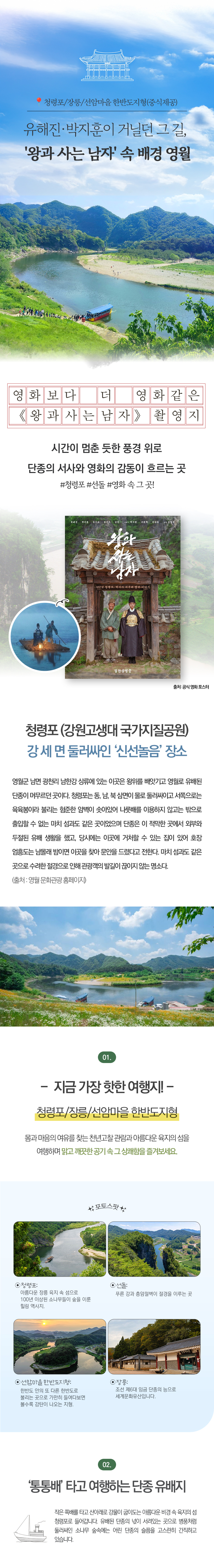 청령포 여행 - 통통배 타고 들어가는 단종 유배지 - 산아래로 강물이 굽이도는 아름다운 비경속 유배된 단종의 넋이 서려있는 육지의 섬이다. - 병풍처럼 둘러싸인 소나무숲속에는 어린 단종의 슬픔을 고스란히 간직하고 있다.