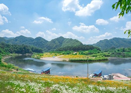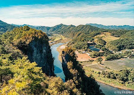 영월 선암마을 한반도 지형 여행 - 한반도 안의 또 다른 한반도 - 가만히 들여다 보면 볼수록 감탄이 나오는 한반도 지형 - 하천의 오랜 침식과 퇴적 작용을 통해 우현처럼 형성됐다지만 우리나라 지형을 꼭 닮은 모습이다. - 오간재 전망대에 올라 보면 더욱 완연한 자태를 감상할 수 있다. ![]() |