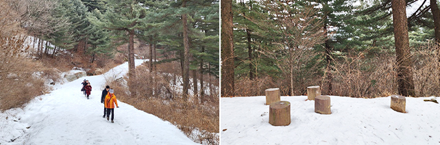 가평 잣향기숲 산책 * 입장료 포함(1,000원) - 생태 주차장-축령백림관-축령산임도,백련사갈림길-잣나무 숲길-사방댐전망대힐링센터(화전민마을)-축령백림관-주차장: 8㎞ - 5만여 그루의 잣나무가 초대하는 숲 속 산책 - 약46만 평에 이르는 153㏊면적에 수령 80년을 넘은 잣나무들이 즐비하게 늘어선 가평의 명소 - 좌측에는 축령산, 오른쪽에는 서리산이 감싼 형태로 잣향기와 야생화를 보면 걸을 수 있는 즐거움을 선사합니다. * 트래킹난이도 : 하(중) ![]() |