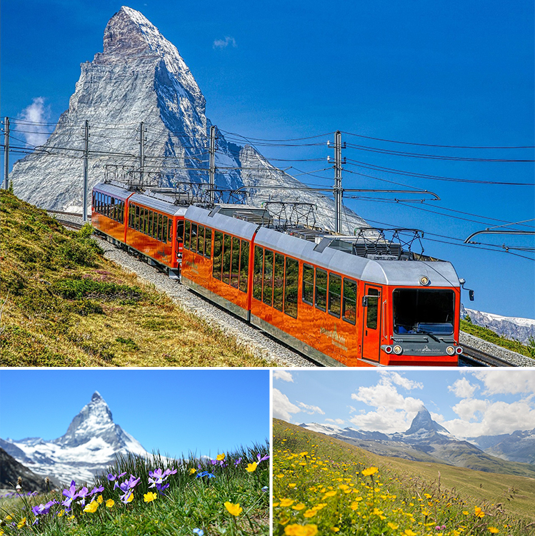 두번째 미봉 "마테호른(4,478m)" ▶ 마테호른 리펠제 트레킹 - 거리: 편도 4㎞, 소요시간: 편안한 길로 유유자적 3시간 + Tasch (마테호른 터미널에 차를 주차하고) 기차로 체르마트역까지 이동 + 체르마트(Zermatt)에서 등산 열차로 고르너그라트(Gornergrat)로 이동 + 체르마트 마테호른 전망대 조망 + 마테호른 전망대에서 리펠베르그(Riffelbefg)역까지 트레킹
