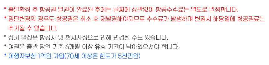 * 상기 일정은 항공 및 현지 사정과 보다 더 좋은 일정을 위해 변경될 수 있습니다.