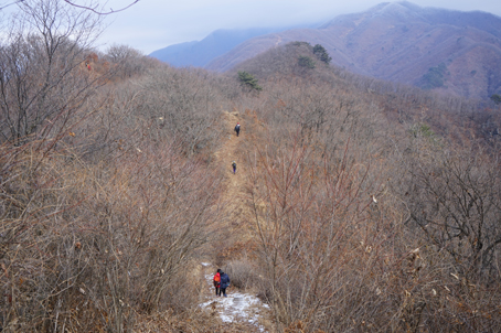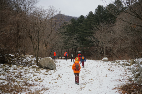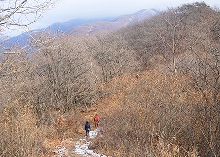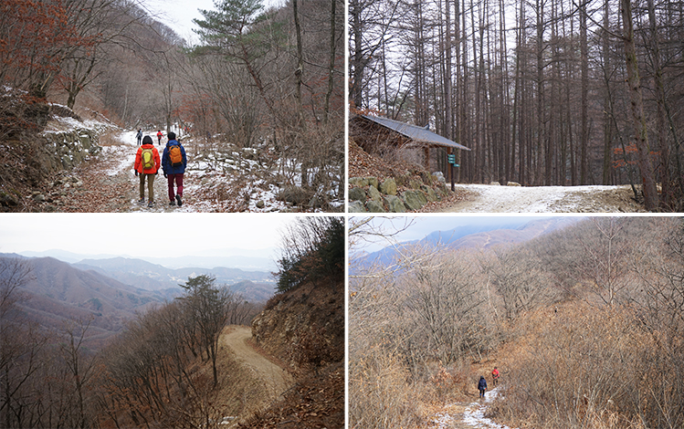 가평 강씨봉 자연휴양림 도착 후 트레킹 - 거리: 약 10㎞, 소요시간: 약 3시간 - 겨울이 걷기 좋은 길이다 강씨봉마을에서 포천시 일동면을 넘어가는 고개를 강씨봉 고개(오뚜기고개)라고 한다. 궁예의 부인 강씨가 살았던 곳으로 알려진 강씨봉마을은 곳곳의 지명에 강씨가 붙어 있다. 그런가 하면 한국전쟁 이후 이곳에 군사도로를 만들 때 작업했던 군부대 이름을 따서 오뚜기고개라 부르기도 한다. ![]() * 트래킹난이도 : 하(상) |