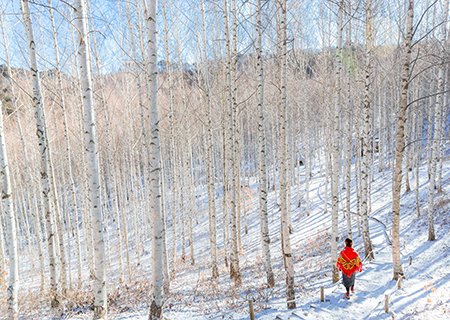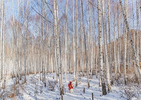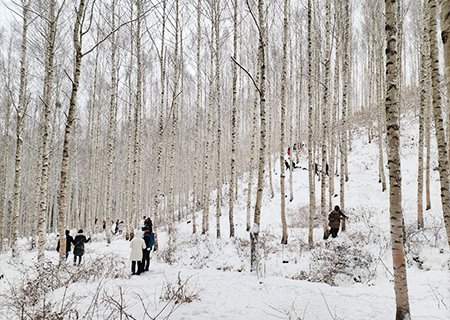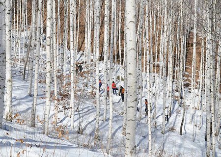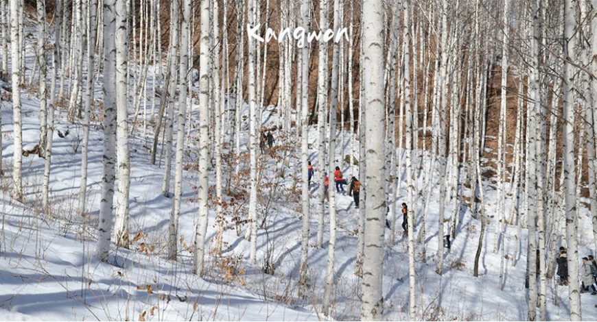 인제 속삭이는 자작나무 숲 눈꽃여행 - 가는길: 임도(3.2㎞) / 오는길: 임도+계곡(3.8㎞) - 완만한 언덕과 좁은 오솔길을 따라 숲 속으로 들어서면 하얀 손길로 여행자를 맞이하는 자작나무들의 향연 - 강원도 인제군 원대리에 위치한 국내 최대 규모의 자작나무 숲길에서 숲이 들려주는 자연의 속삭임에 귀를 기울여 보자
