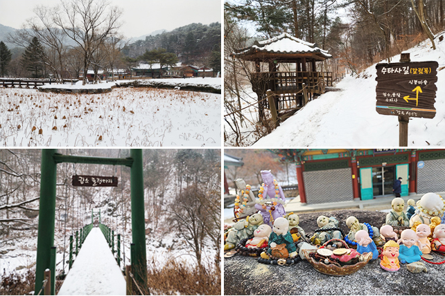 홍천 수타사 눈꽃풍경과 산소길 산책 - 산소길 왕복 3.2㎞ - 화려하진 않지만 사계절 내내 고요한 모습으로 여행자를 묵묵히 반겨주는 천년고찰 - 흙과 공기, 자연을 느낄 수 있는 산소길과 이어진다. - 점심식사(식당이용가능)