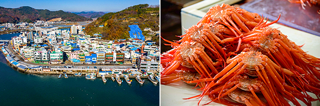 강구항에서 점심식사 - 4인 기준 12만원 상당 - 홍게비빔밥, 홍게탕, 홍게 1인 1마리 제공 |