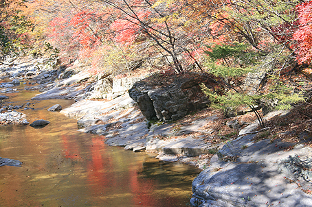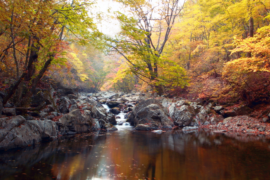 무주 도착 및 덕유산 무주구천동 단풍여행 - 왕복 10㎞, 약3시간10분소요 (원점회귀 코스) - 점심식사 (식당이용가능) * 트래킹 난이도 : 하(상) * 계곡 따라 나무테크길 걷기 편한 길입니다. 무주구천동 어사길