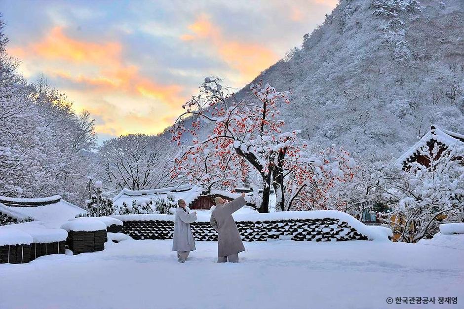 겨울의 내장사는 화려한 가을 단풍과 또 다른, 차분하고 고즈넉한 분위기를 자아내는데요. 내장산 산봉우리들이 병풍처럼 둘러싼 가운데에 자리잡아 주변 경치가 매우 아름답습니다.