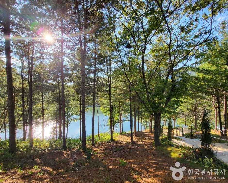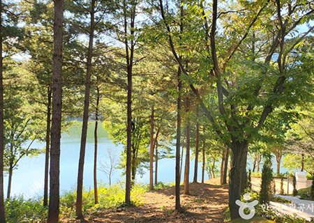 향수호수길은 대청호반의 절경을 따라 마성산 자락에 조성된 생태문화 탐방로다. 옥천읍 수북리 옥천 선사공원에서 출발해 날망마당~물비늘전망대~황새터~용댕이(황룡암)를 거쳐 안내면 장계리 주막마을까지 5.6km 길이로 조성되었다. 대청댐 준공 이후 30여 년 간 사람의 발길이 닿지 않은 청정 숲이 반기고, 옛 주민들이 마실 다니던 산자락 길을 따라 대청호의 아름다운 풍광이 굽이굽이 이어져 있다. 대청호반의 고즈넉한 풍경을 눈에 담고 짙은 녹음이 드리운 숲길을 느릿느릿 걷다 보면 마음이 절로 평안해지는 호수길이다.