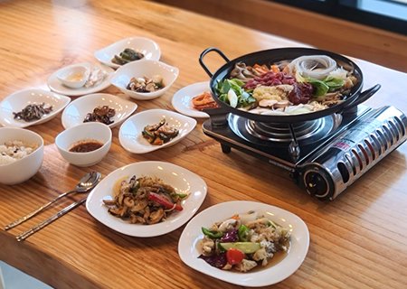 점심식사(제공식: 지역 송고버섯 한정식) - 송고버섯이 들어간 소고기송고버섯 전골과 탕수, 잡채, 버섯영양밥 등으로 구성된 한상차림 정식 ![]() |