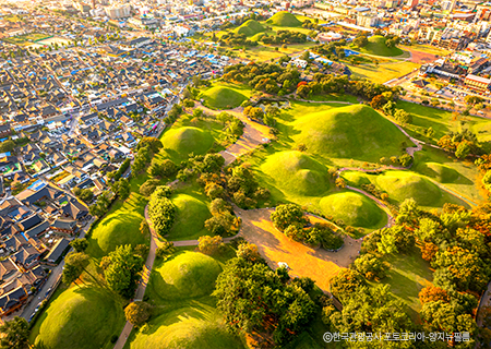 경주 대릉원은 신라 시대의 고분군을 말하며 원형으로 흙을 쌓아 올린 30기의 무덤이다. 대릉원 안에는 전 미추왕릉을 비롯하여 천마총과 황남대총 등이 있다. 천마총은 1973년 4월 6일부터 12월 4일까지 발굴조사됐다. 천마총은 지름 47m, 높이 12.7m로 금관을 비롯하여 많은 유물이 나왔다. 당시 천마도가 그려진 말안장 드리개가 출토되었기 때문에 천마총이라 이름 짓고 내부를 공개하고 있다.