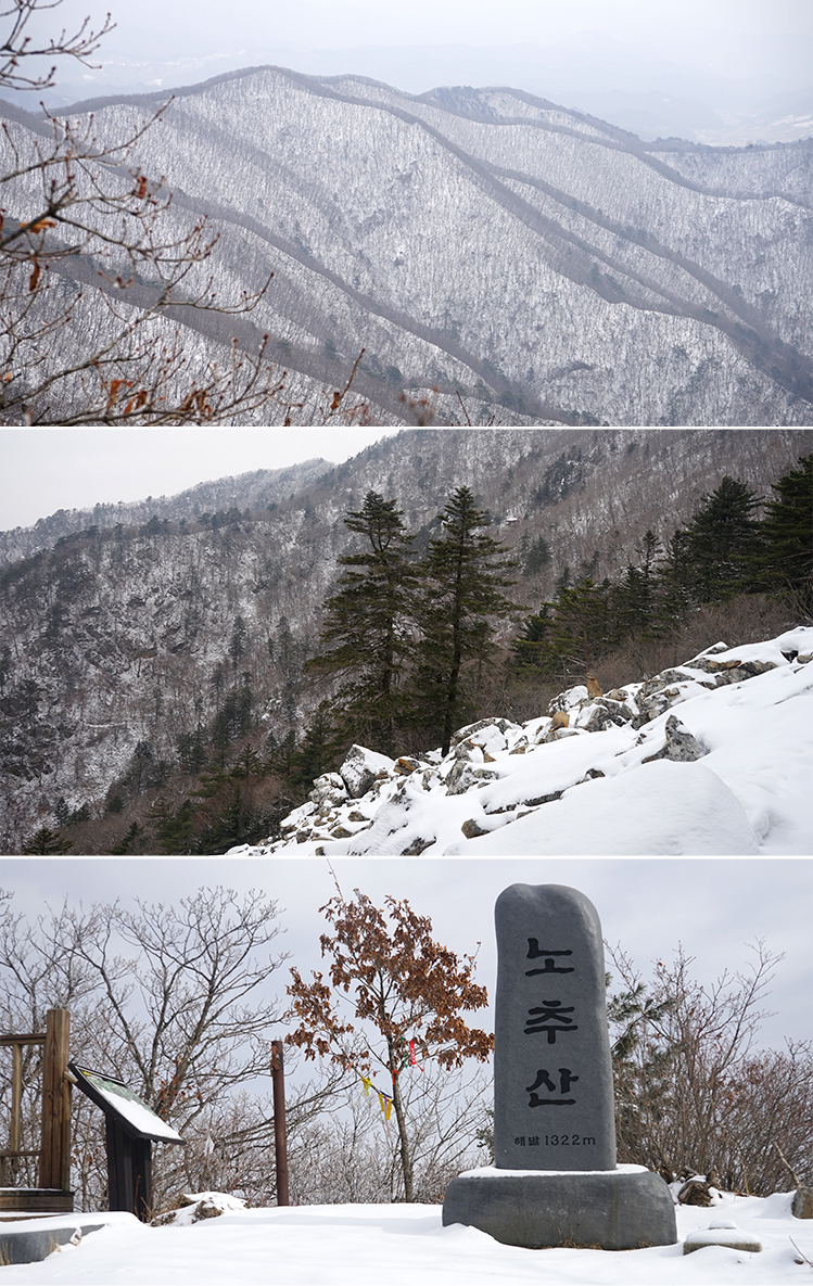 정선 구절리역 도착 및 노추산트래킹 - 코스: 정선 구절리역-강릉 노추산-모정탑 하산 - 소요시간: 약 4시간30분 * 트래킹난이도: 중(중) ![]() 강릉 노추산과 모정탑