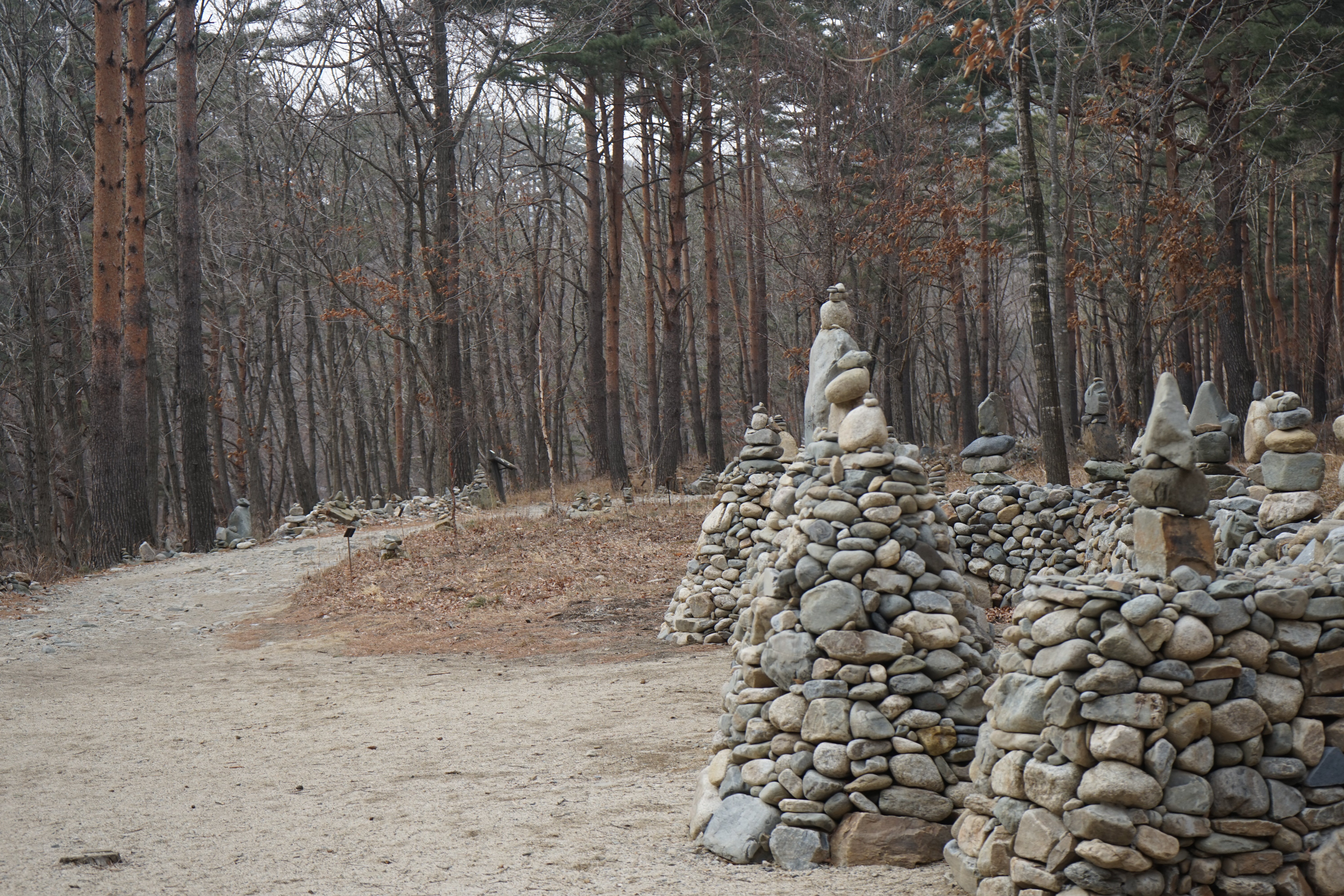노추산 자락에는 3,000개의 돌탑 골이 있다. 탑골을 만든 이는 차옥순 할머니로 2011년 향년 68세로 세상을 떠나기까지 무려 26년간 이곳에서 돌탑을 쌓았다.