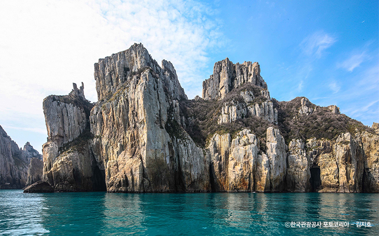 기상 및 아침식사(제공식) - 백도 유람선관광 - 39개의 무인군도로 이루어져 있는 천연생태계의 보고 '백도'. - 높고 낮은 기암괴석들과 깎아지른 절벽, 그 모습들이 천태만상으로 변화무쌍하여 장관을 이루는 곳.