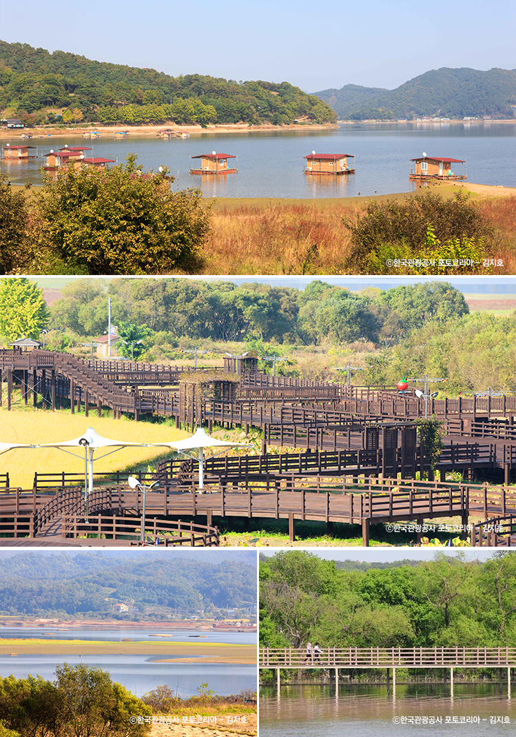 전 구간 나무 데크에 턱이나 계단이 없어 유모차나 휠체어 이용자도 불편하지 않다. 남녀노소 누구나 걷기 쉽고, 예당호의 풍경을 온전히 만나는 것이 느린호수길의 특징이자 매력이다. 예당호는 낚시터로 정평이 났는데, 예당호 좌대 풍경은 지날 때마다 새로운 풍경을 선사한다.