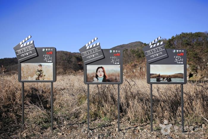 국보인 충주 탑평리 7층 석탑은 남한강의 아름다운 경관과 잘 어우러져 있는 통일신라 시대의 석탑으로, 당시에 세워진 석탑 중 가장 규모가 크며, 우리나라 중앙부에 위치한다고 해서 중앙탑이라고도 부른다. 중앙탑 주변에는 넓은 잔디밭에 조각공원이 조성되어 있으며 충주박물관과 술박물관이 위치해 있다.