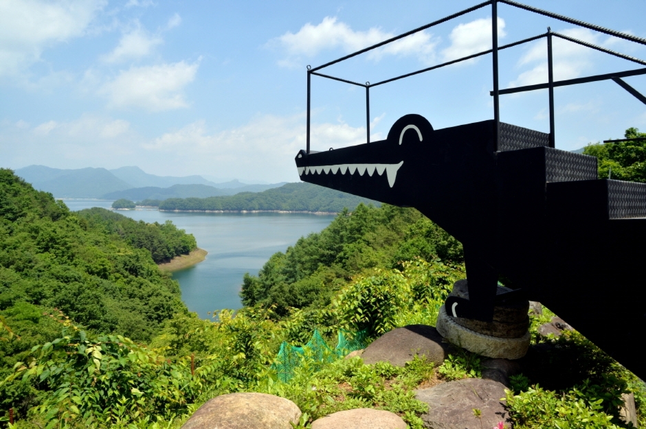 악어봉은 정상에서 충주호를 내려다보면 호수에 맞닿아 있는 산자락들의 모습이 마치 악어떼가 물속으로 기어 들어가는 형상과 같다해서 붙여진 이름이다. 월악산 자락은 ‘악어섬’이라 불리고, 이를 관망할 수 있는 곳을 ‘악어봉’이라 한다. 악어봉은 작은 악어봉(448m)과 큰 악어봉(559m)으로 나누어지는데 이곳에서 내려다보는 충주호 경관이 장관이다. 악어봉은 야생생물보호구역으로 지정되어 있어 허가 없이 오르는 건 불법이었으나, 현재 정식 탐방로를 나무데크길로 조성해 놓았다. 악어봉은 야생생물보호구역으로 지정되어 있어 허가 없이 오르는 건 불법이었으나, 많은 사람들의 방문으로 현재는 정식 탐방로를 조성해 놓았다.
