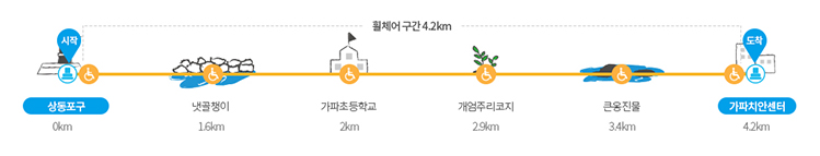 *가파도는 총 길이 4.2km로 올레길이 짧은 편이다. 입도하는 시간에 따라 상동포구와 하동포구 그리고 가파초등학교 인근에서 식사를 하거나 카페를 이용할 수 있다. |