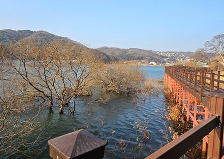 봉곡사 천년숲 산책 - 송학로 호수-(숲길 약간, 호수 위 나무데크 약간 산책)-마을길-작은동산 능선길-배골마을-오돌개마을-임도길-봉곡사 주차장 - 거리: 8.6㎞, 소요시간: 3시간 30분 - 작은 지리산 둘레길 같은 느낌입니다. - 호수길-마을길-작은동산 능선길-임도 등 다양한 길로 이루어졌습니다. * 트래킹 난이도 : 하(중) ![]() 아산 봉곡사