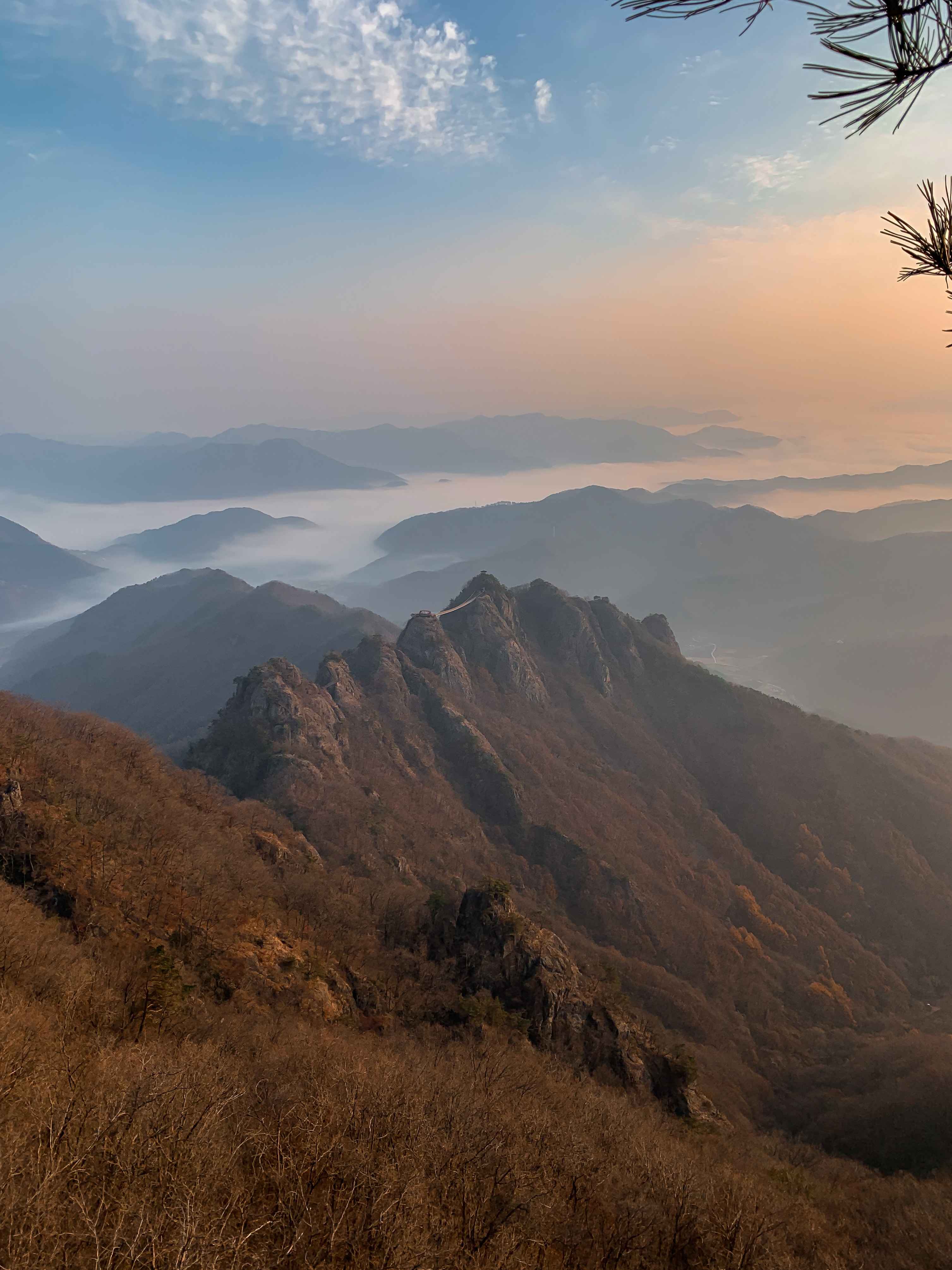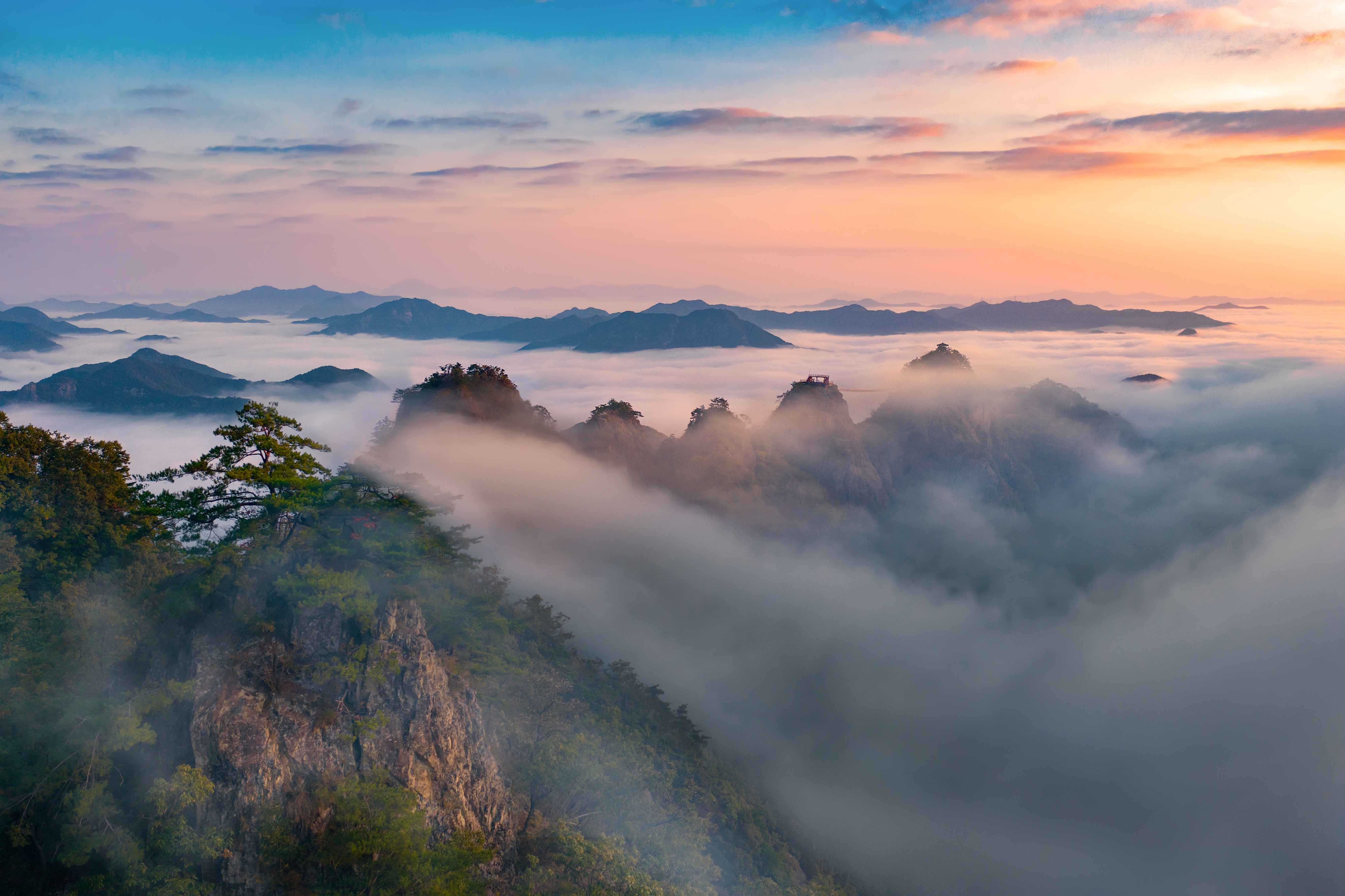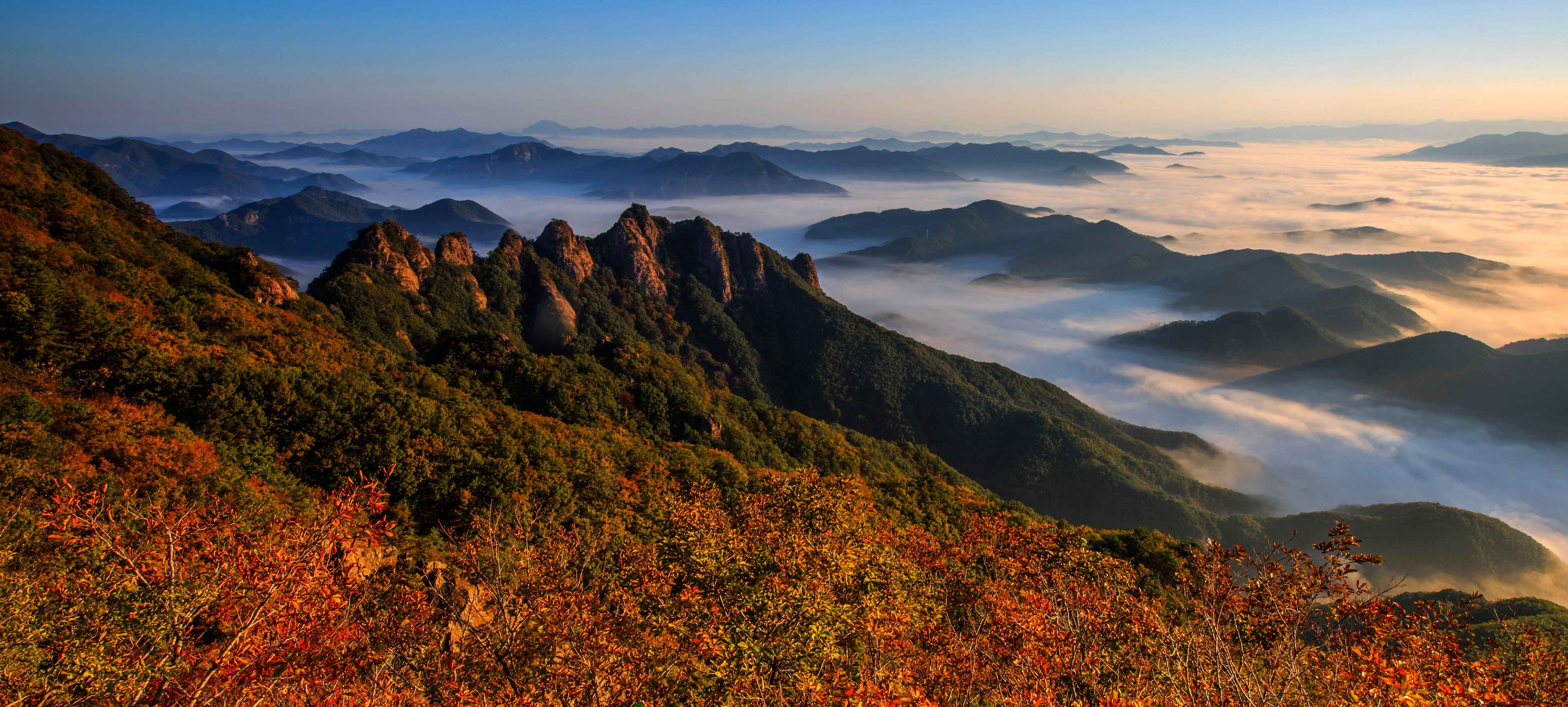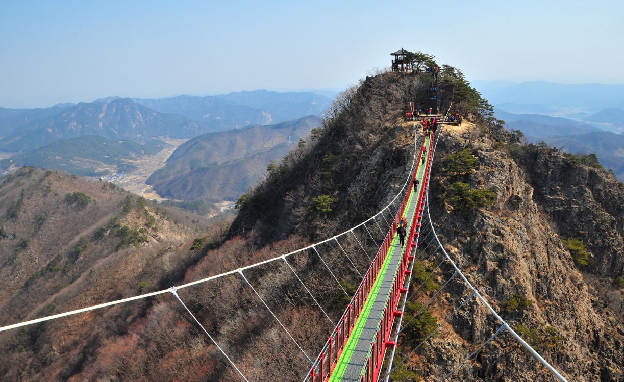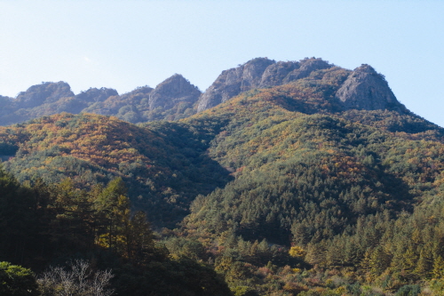 주천면의 관문인 이산은 운장산의 동쪽으로 이어진 산인데, 정상까지 오르는 데 약 3시간 정도 걸린다. 봉우리들은 천왕봉을 주봉으로 산들이 깎아 세운 듯한 절벽으로 형성되어 올라가기가 어렵고 험준하다. 1봉이 656m인데 가파른 산길을 올라야 한다. 마지막 봉우리인 9봉이 1천2m이다. 단조롭지 않은 산길이라 지루하지 않으며 바위 봉우리를 오르내릴 때마다 변하는 주변의 풍경에 경이로움마저 갖게 한다. 정상에 오르면 서쪽으로 북두봉과 운장산이 들어오고, 남쪽으로 옥녀봉, 부귀산 북쪽으로 명덕봉, 명도봉 등이 보이고 맑은 날에는 멀리 덕유산과 지리산의 웅장한 모습이 시야에 들어온다. 상양명 마을의 대형 주차장에서 구봉산까지는 약 2.8㎞ 거리이다. 주차장에서 1.5㎞ 정도 올라가면 1봉과 2봉 갈림길이 나오며, 1봉은 가파른 바윗길로 80m 정도 우측에 있다. 이후에는 순서대로 오른다. 특히 7봉과 8봉은 험해서 산 정상으로 오르는 등산로가 없고, 우회해야 오를 수 있다. 조망이 좋으나 가파르고 위험하여 봉우리 능선 통과가 어려운 7~8봉 구간에는 연결 다리·목재 데크·전망대·파노라마 데크 시설이 있다. 그리고 4~5봉 사이에는 약 100m 정도의 구름다리가 있다. 이미지 출처 ⓒ한국관광공사 포토코리아-조훈기, 이근완, 김상헌 |