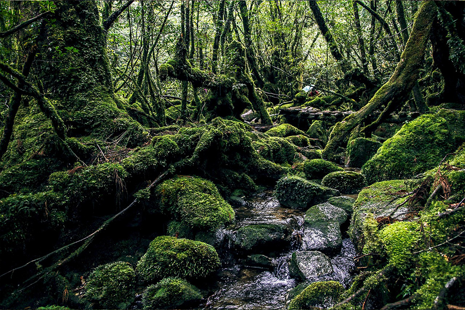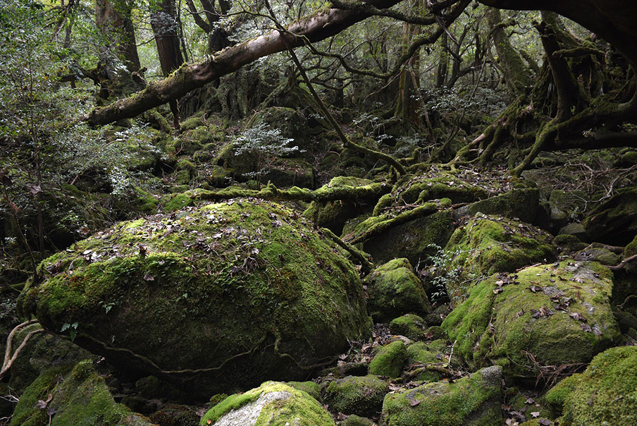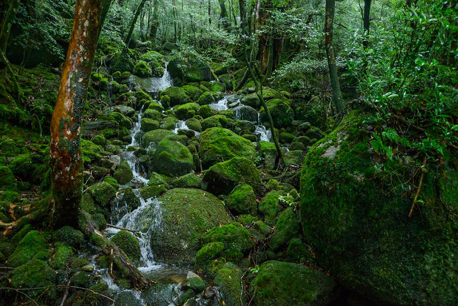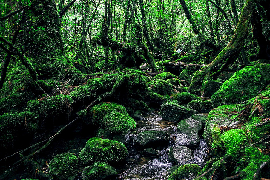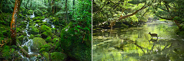 섬 전체가 세계문화유산으로 등록되 있는 이끼의 숲이라 불릴 정도로 섬 전체가 이끼로 둘러쌓여 있고 추정 수령이 2600~7200년인 조몬스기 삼나무가 존재하고 있으며, 1000년 이상의 '수기'라고 하는 거대한 삼나무가 큰 자랑거리이다. |