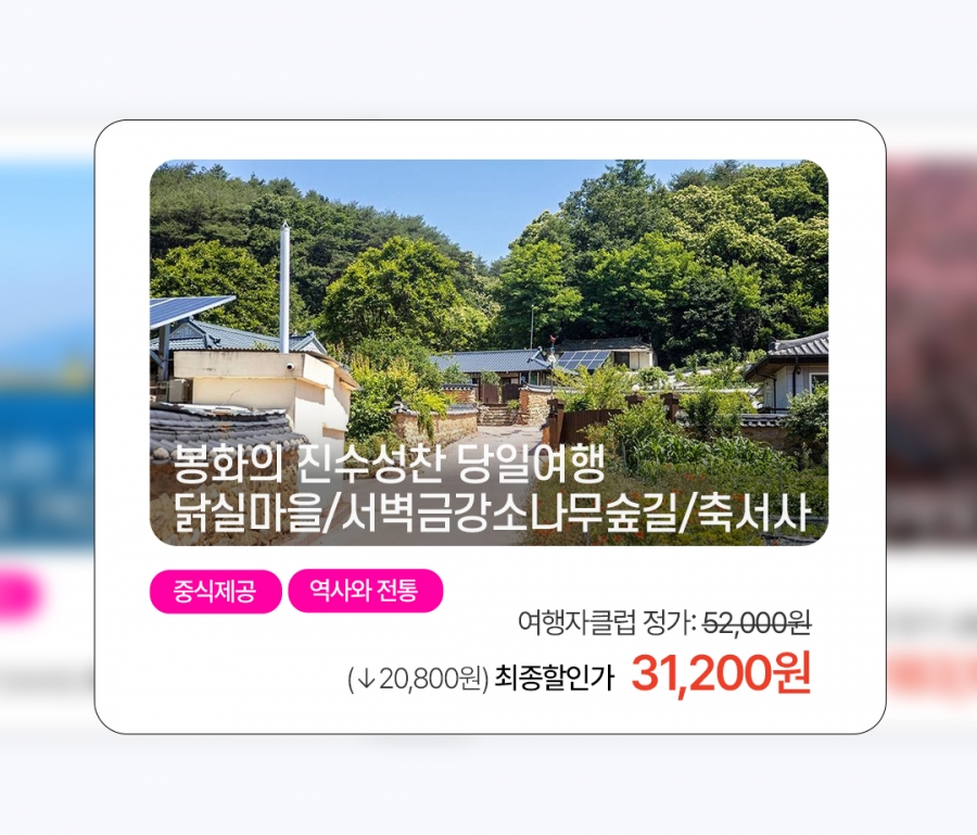 [경북] 봉화의 진수성찬 - 닭실마을(석천정사)/서벽금강소나무숲길/축서사(중식제공) 당일