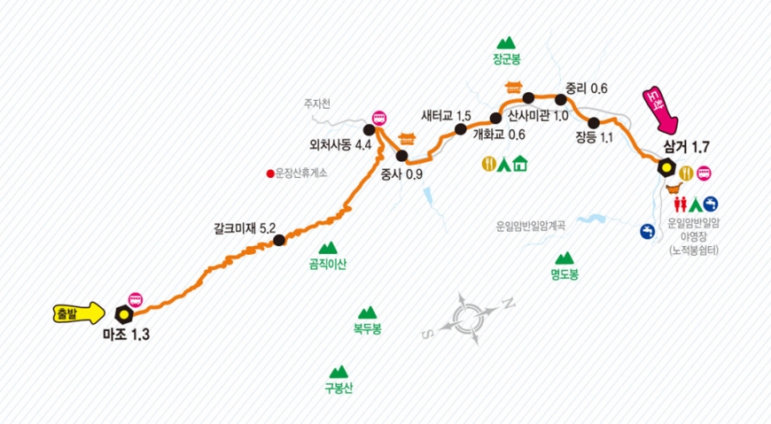 진안 고원길 8구간 트래킹 - 코스: 마조->삼거 - 거리: 17㎞, 소요시간: 약 6시간 30분(인증지점:갈크미재/산사미관) ![]() * 트래킹난이도 : 중(중) 진안고원길 8구간 (운장산 넘는길)