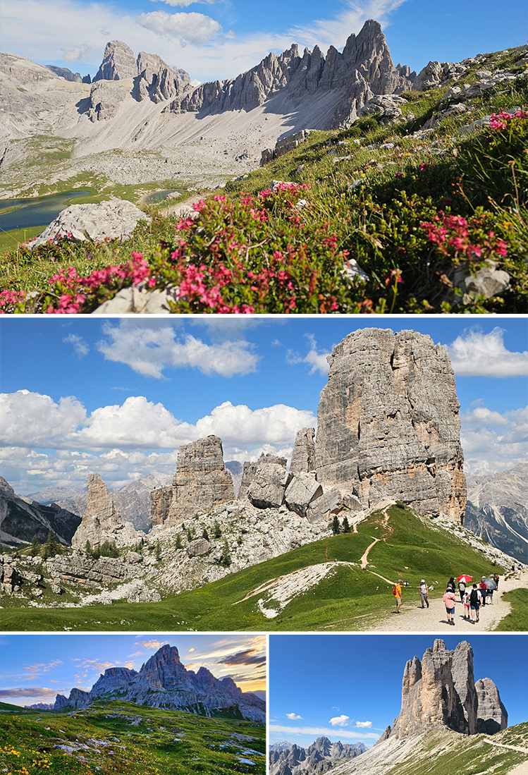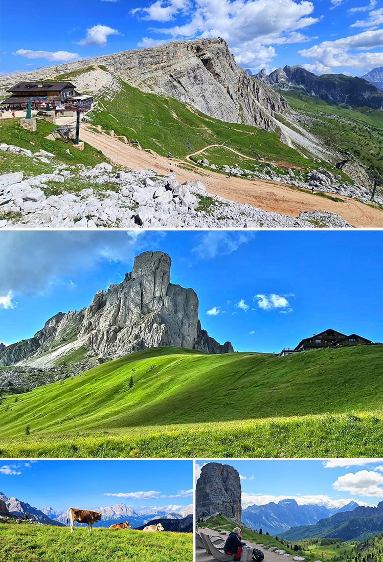 호텔 조식 후 이동(50분소요) 라가주오이산장 파소 팔자레고(2,105m) 곤돌라로 라가주오이 산장(2,752m) 도착 후 라가주오이 전망대까지 풍경을 보며 다녀옵니다. ![]() 팔자레고(Passo Falzarego) 트레킹 ◐루트: 팔자레고(Passo Falzarego, 2105m)~>리메데스호수(Largo Limedes)~>아베라우산장(Rifugio Averau)에서 지아우고개 전망 ~>친퀘토리(Cinque Torri) 자유시간 후 리프트로 하산 ![]() +코르티나담페초 시내 투어 호텔 투숙 및 휴식 |
