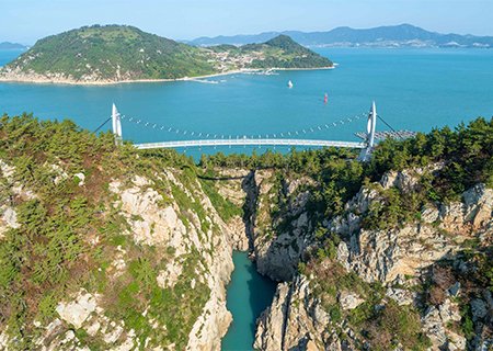 하화도 꽃섬둘레길 트래킹 - 코스: 선착장-야생화공원-큰굴-막산전망대-꽃섬출렁다리-큰산전망대-구절초공원-낭끝전망대-선착장 - 거리: 7.5㎞, 소요시간: 약3시간 소요 - 아름다운 꽃들이 만개하는 섬 - 하화도 제1절경이라 할 수 있는 꽃섬다리는 걷다보면 아래로 용굴이 보인다. * 트래킹난이도 : 하(상) ![]() 여수 하화도