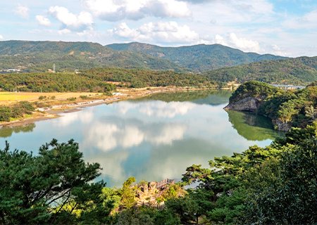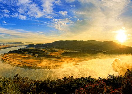 경천대 산책 - 황금 들판 사이 굽이치는 낙동강을 바라보는 곳. - 깎아지른 절벽과 노송으로 이루어진 절경이 빼어나다.