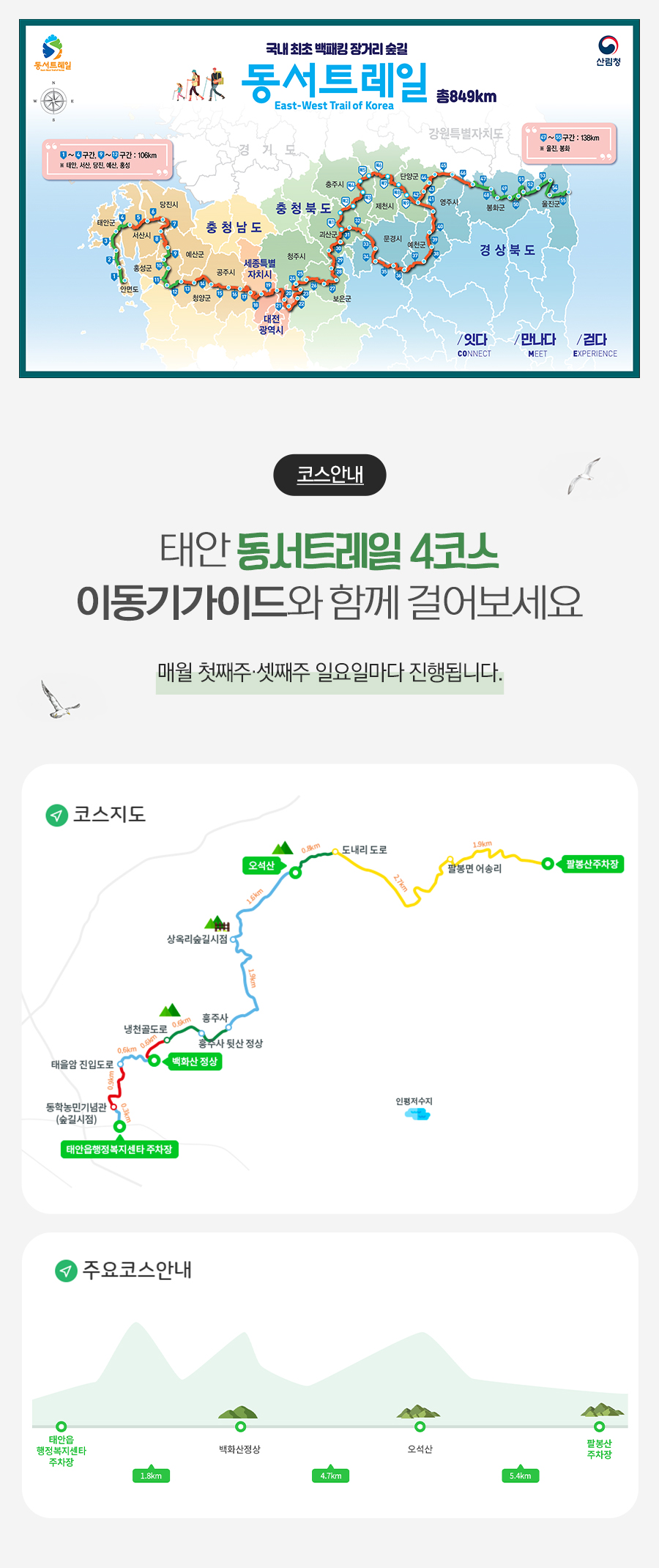 동서트레일 4코스 트래킹 - 코스: 태안읍행정복지센터~흥주사~오석산~팔봉산 주차장(어송리) - 거리: 12.2㎞, 소요시간: 약3시간30분 *트레킹난이도: 중(하) ![]() 백화산