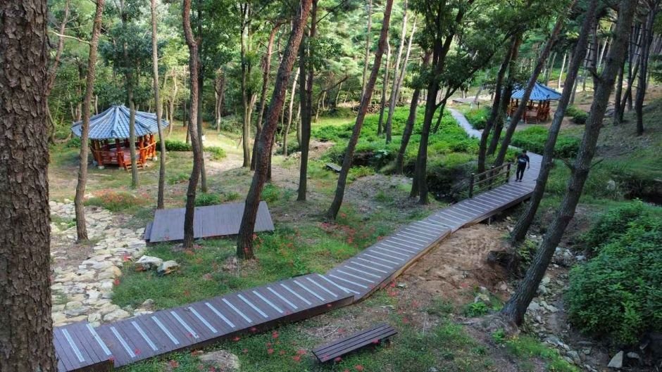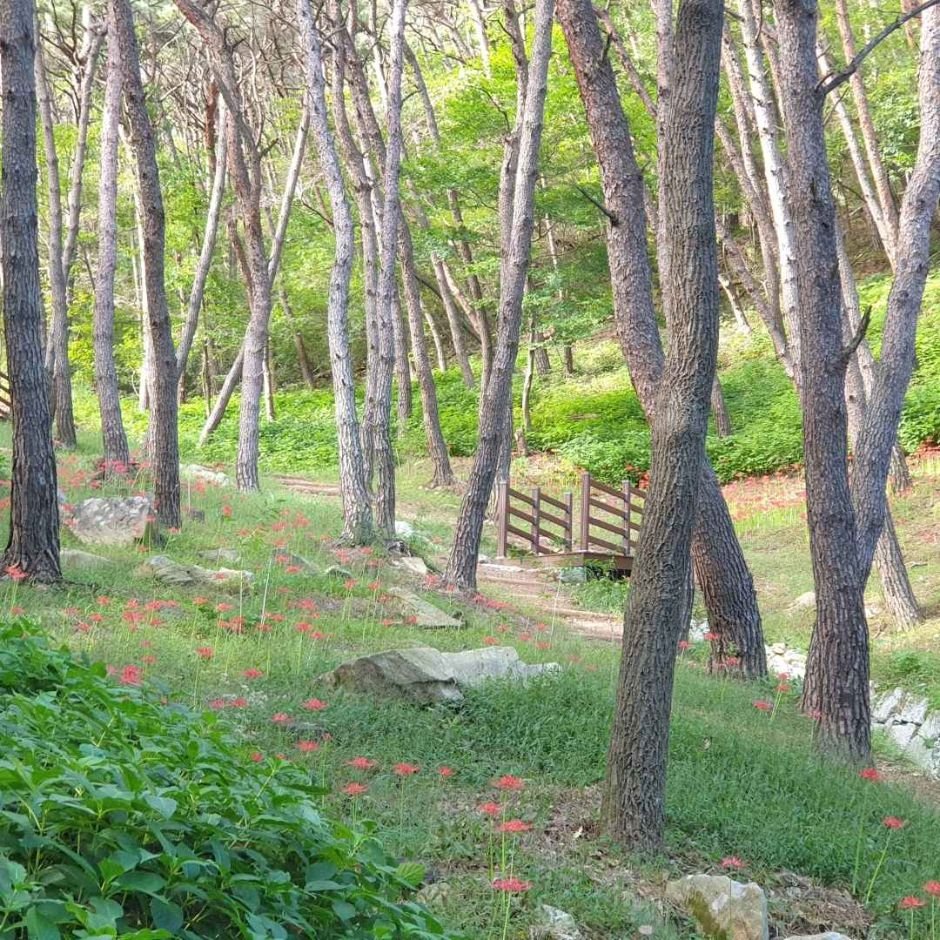 배넘이재 2.5㏊ 일대에 소나무를 정리하고 산수국 4만 7천200본, 꽃무릇 11만 7천500본을 식재해 소나무와 화목류가 조화롭게 생육하고 꽃을 피울 수 있도록 하였다. |