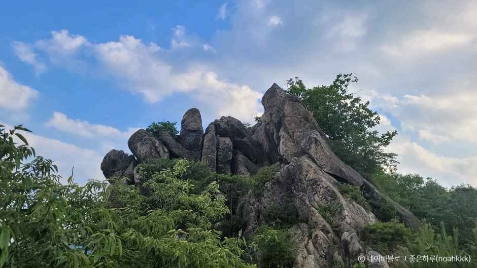 풍악소리가 들려올 것 같은 기분 좋은 산행 100대 명산-동악산 등산 코스 : 도림사관광단지 주차장-도림사-갈림길-하늘정원(수국)-배넘이재-동악산 정상-신선바위-도림사 10km. 약 3시간 30분소요 * 난이도 중(중) ================================================================================= 관광 코스 : 도림사관광단지 주차장-도림사-갈림길-하늘정원(수국)-도림사 (원점회귀) 왕복 약 2시간소요 * 난이도 하(상)